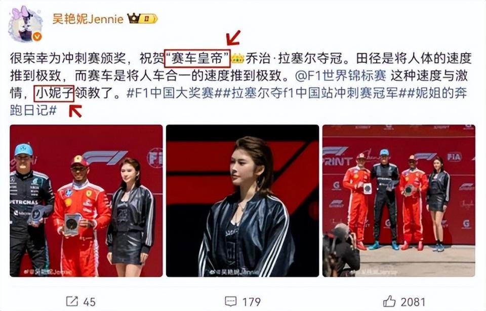 而 F1 的海外官方账号在发布合照时,还专门截掉了吴艳妮,尴尬到了极点。