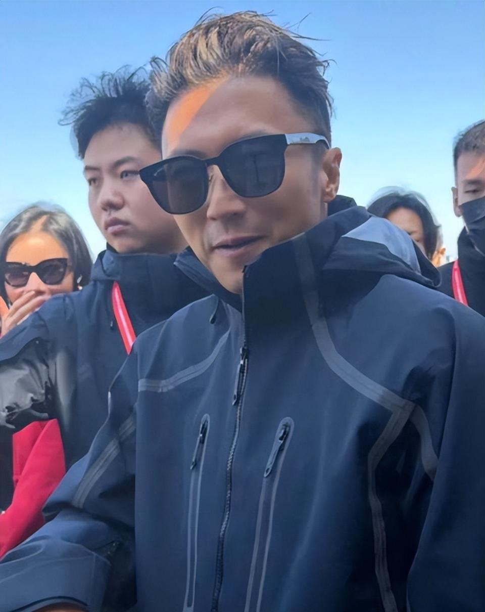 谢霆锋的穿搭还是一如既往的怎么路人怎么来,身上这件黑色冲锋衣,日常生活中十分常见。
